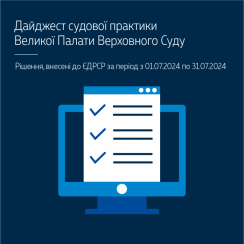 Пропонуємо до уваги дайджест судової практики Великої Палати Верховного Суду (рішення, внесені до ЄДРСР за липень 2024 року) – https://supreme.court.gov.ua/userfiles/media/new_folder_for_uploads/supreme/ogliady/Daijest_VP_VS_07_2024.pdf