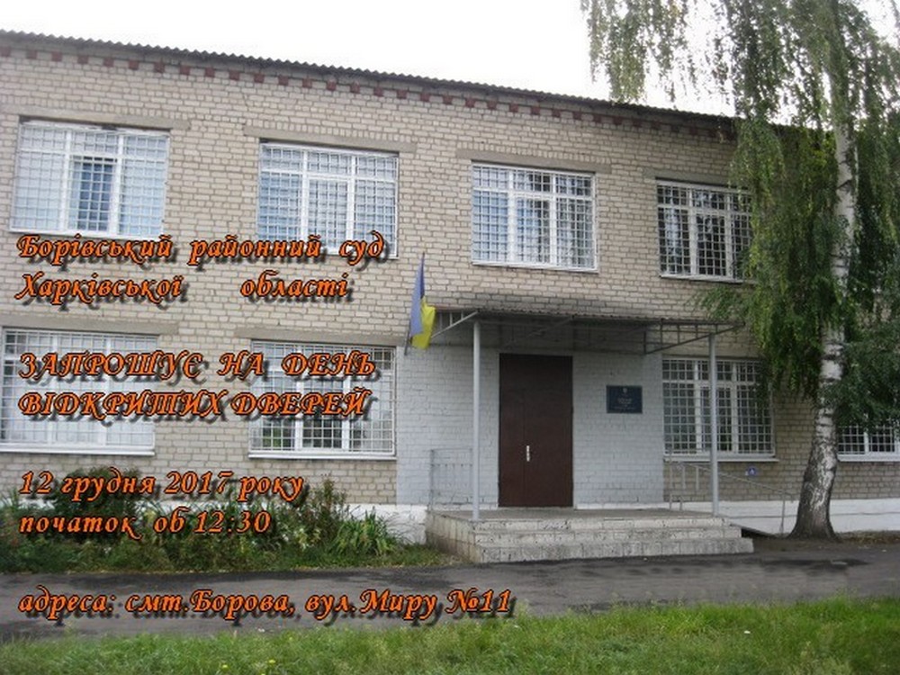 Тож,  Борівський районний  суд Харківської області знову відкриє двері для правничої молоді Борівщини, запрошуємо  школярів 11-х класів окружного опорного закладу  Борівської ЗОШ І-ІІІ ст. № 1  ім. Ім. Героя   Радянського Союзу В.С. Колісника.