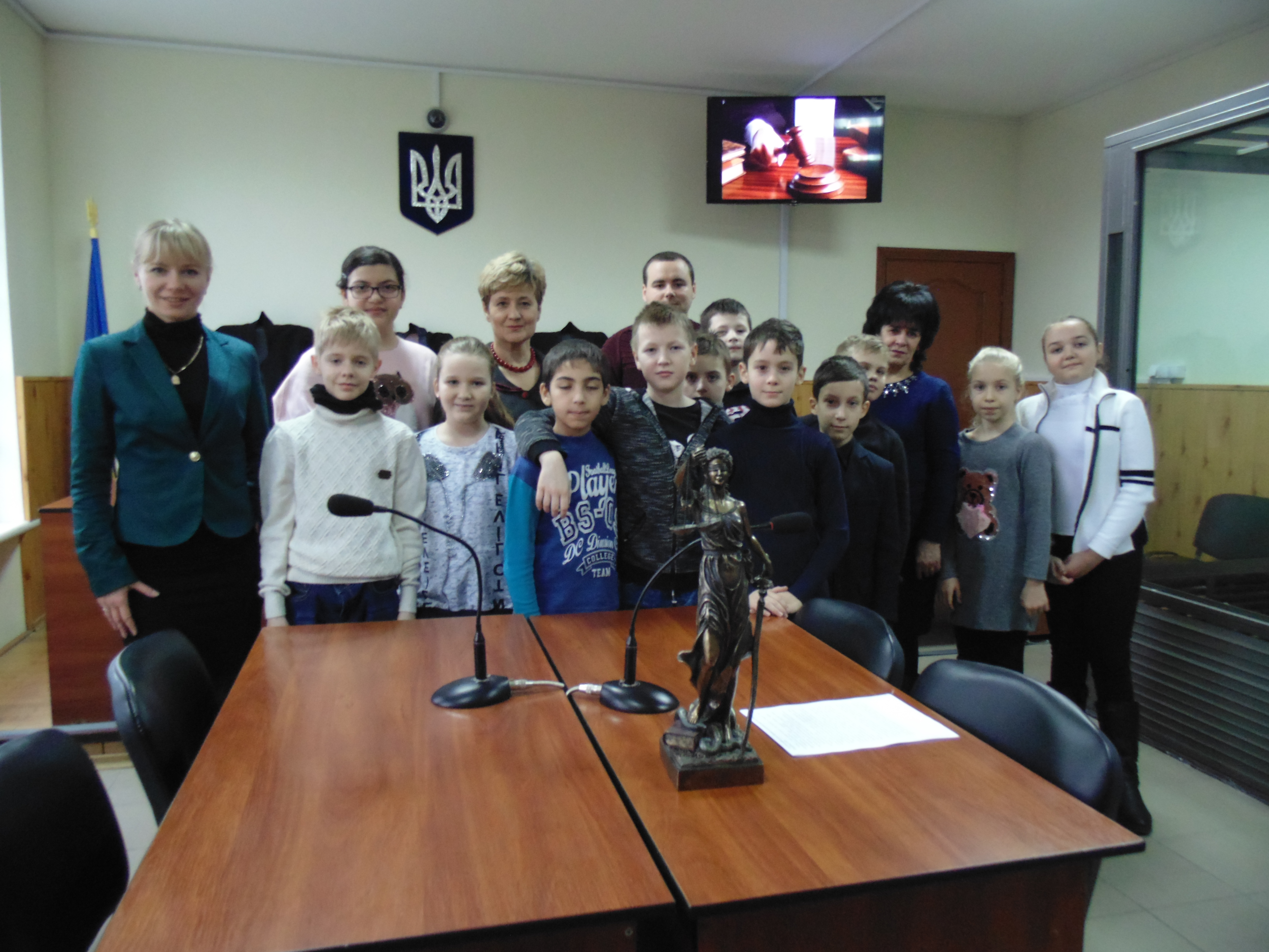 Зустріла учнів керівник апарату суду Алла Шевченко, яка провела коротеньку екскурсію приміщенням суду. Разом із керівником апарату суду діти відвідали архів суду та мали змогу побачити як зберігаються справи. Після цього Алла Шевченко показала як працює «великий комп’ютер» - інформаційний кіоск, що розміщений на 3 поверсі приміщення суду.