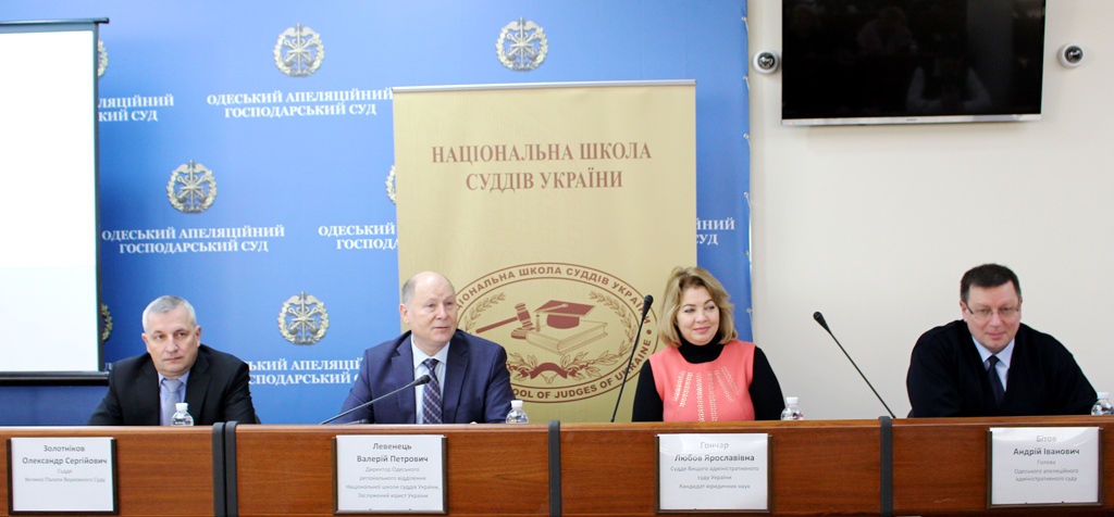 Вітальними словами семінар відкрили директор Одеського регіонального відділення Валерій Левенець, голова Одеського апеляційного адміністративного суду, кандидат юридичних наук Андрій Бітов та викладачі – суддя Вищого адміністративного суду України, кандидат юридичних наук Любов Гончар та суддя Великої Палати Верховного Суду Олександр Золотніков.