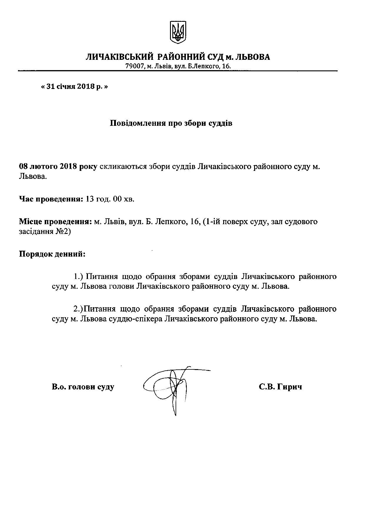 Відбудуться збори суддів Личаківського районного суду м.Львова