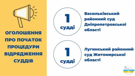 Вища рада правосуддя відповідно до рішень від 26 серпня 2021 року № 1879/0/15-21 та № 1880/0/15-21 та оголошує про початок процедури відрядження суддів до іншого суду того самого рівня і спеціалізації для здійснення правосуддя, а саме до: