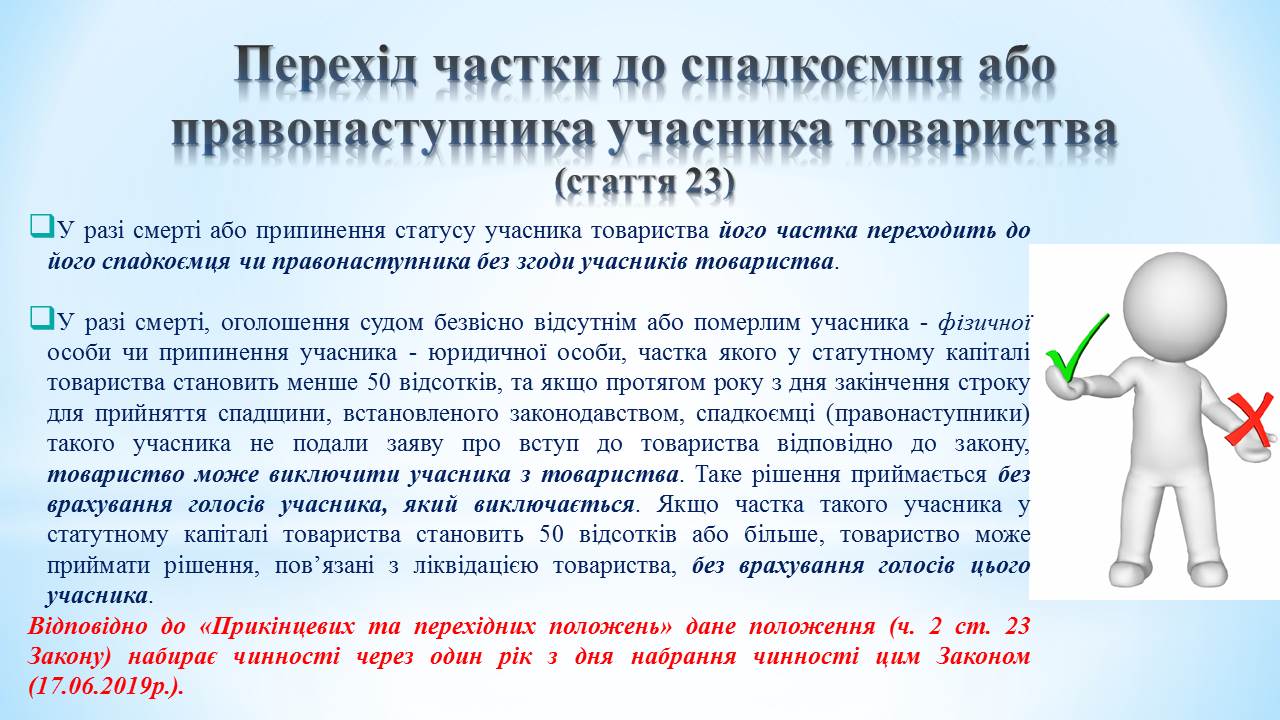 17 червня 2018 року набрав чинності Закон України «Про товариства з обмеженою та додатковою відповідальністю» №2275-VIII від 06.02.2018р.