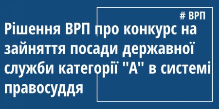 На офіційному веб-сайті Вищої ради правосуддя оприлюднено текст рішення Вищої ради правосуддя від 17 січня 2019 року № 142/0/15-19 «Про оголошення конкурсу на зайняття посад державної служби категорії «А» у Державній судовій адміністрації України»