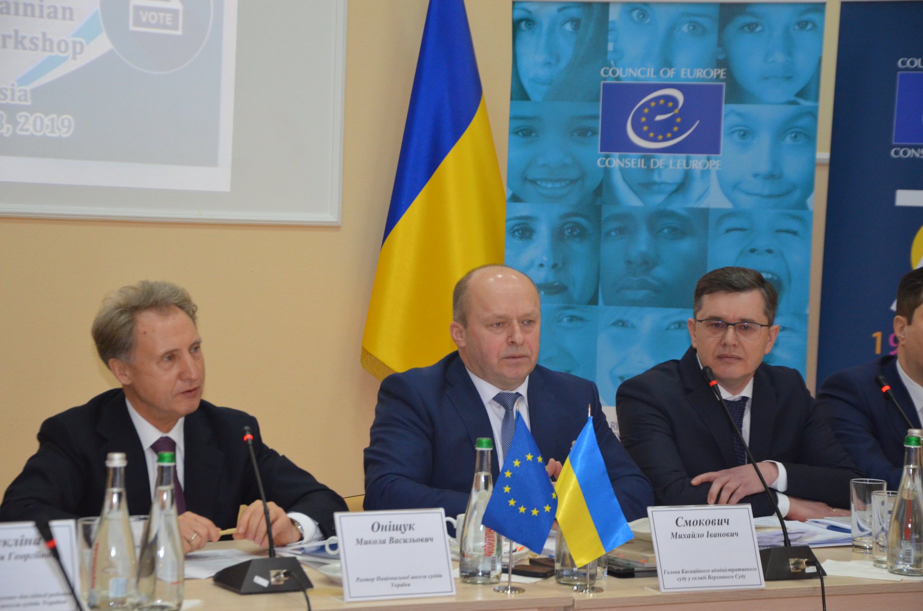 Відкривали цю фахову зустріч суддів адмінсудів ректор Національної школи суддів України Микола Оніщук, голова Касаційного адміністративного суду Михайло Смокович, очільник 7 апеляційного адміністративного суду Віталій Кузьмишин, секретар Великої палати ВС Всеволод Князєв та керівник проектів Офісу Ради Європи Сергій Ткаченко.