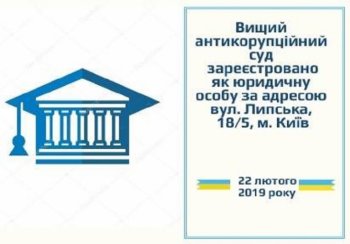 Зареєстровано Вищий антикорупційний суд як юридичну особу