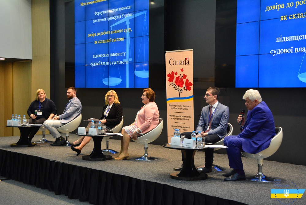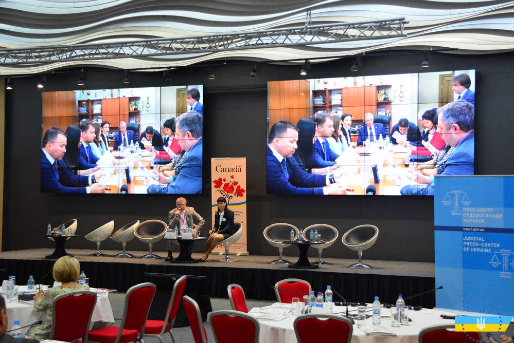 Відкрили захід Жюлі Терьєн, заступник Уповноваженого з питань федеральних суддівських справ Канади, Наталія Петрова, заступник керівника Програми USAID «Нове правосуддя» та Сергій Томіленко, голова Національної спілки журналістів України. Модератори відкриття заходу – начальник управління інформації та забезпечення комунікаційної діяльності, керівник Прес-центру судової влади України Оксана Лисенко та головний редактор видання «Юридична газета» Єгор Желтухін.