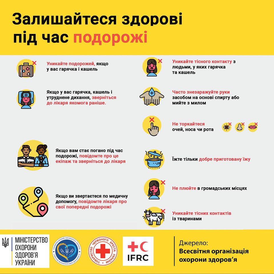 Переконайтесь, що всіх осіб, які подорожують у регіони, що повідомляють про COVID-19, проінформовано про профілактичні заходи кваліфікованими медичними працівниками