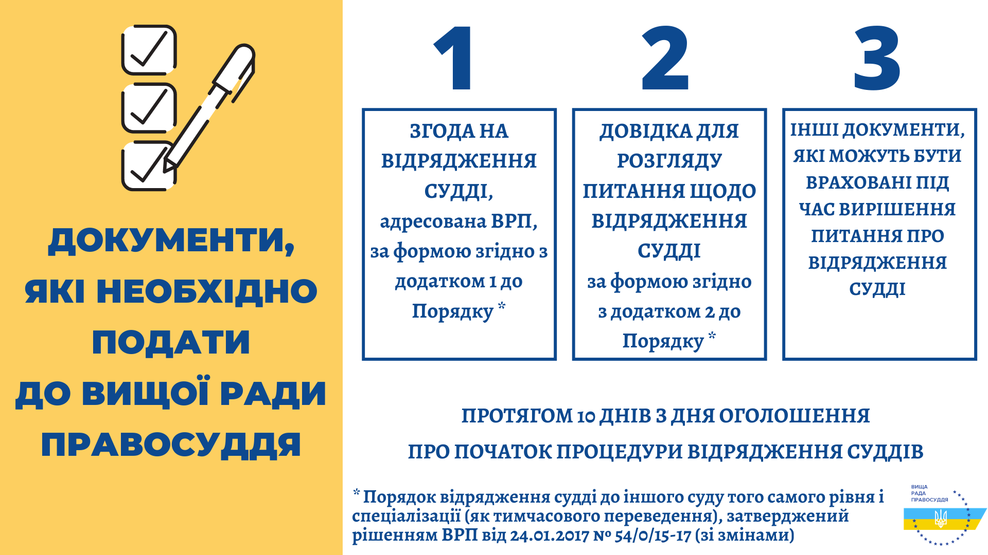 Вища рада правосуддя відповідно до рішення від 8 вересня 2020 року № 2585/0/15-20 оголошує про початок процедури відрядження суддів до іншого суду того самого рівня і спеціалізації для здійснення правосуддя, а саме до: